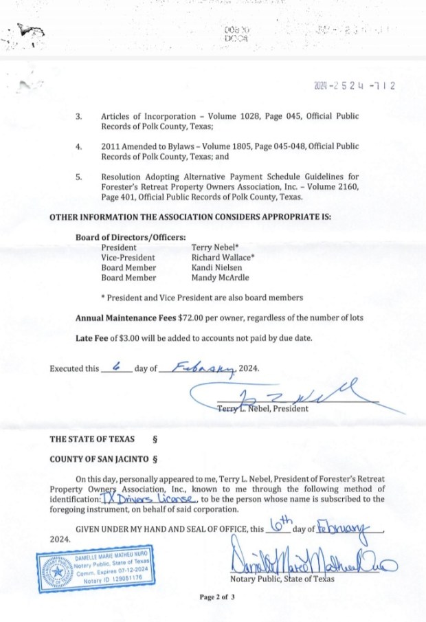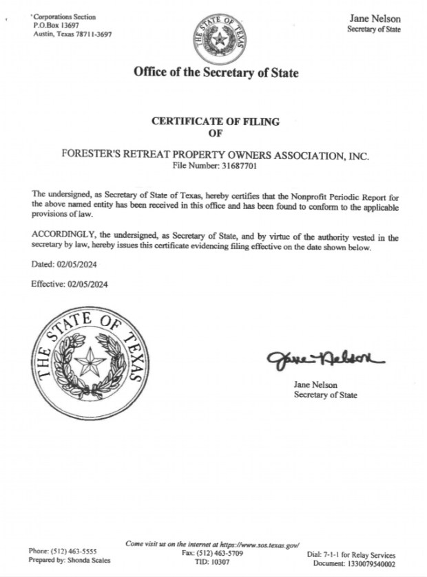 Foresters Retreat Property Owner association