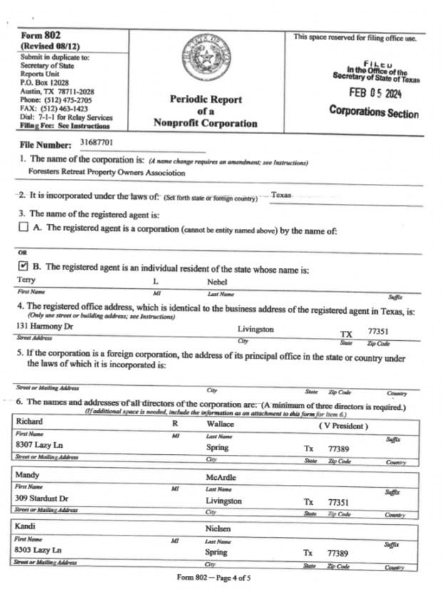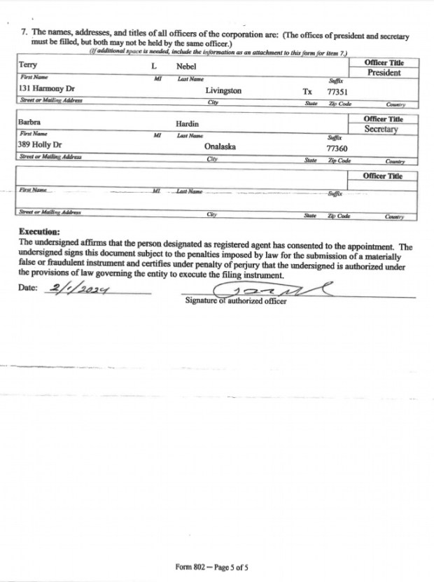 Terry Nebel Stated all Required Legal Forms will be Submitted